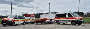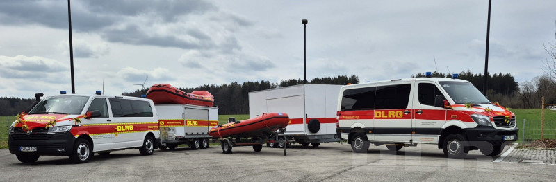 Begonnen wurde die Veranstaltung im Freien auf dem Hof mit der Segnung der neuen Einsatzfahrzeuge durch Abt Petrus vom Kloster Schäftlarn. Der blickte in seiner kurzen Ansprache zurück auf das Jahr 2019, hier konnte er schon einmal ein IRB (Inflatable Rescue Boat) in Dienst stellen. Von ihm wurde das damals liebevoll „knallrotes Gummiboot" genannt, vermutlich weil die Kapelle schlagfertig den bekannten Schlager anstimmte. Diesmal wurde insbesondere eine TraLog (Transport und Logistik) Einheit gesegnet, die frisch an die DLRGler ausgeliefert wurde. Damit wird der Ortsverband noch weiter in den Katastrophenschutz eingegliedert. Der zugehörige Geräteanhänger wurde von den tatkräftigen Mitgliedern der DLRG möglichst praktisch und vielseitig ausgestattet, so dass er dann in einem Katastropheneinsatz gut genutzt werden kann. Weiterhin steht der DLRG nun ein neues Einsatzfahrzeug bereit, das die Mannschaft für den Dienst am Starnberger See nutzt. Alle Fahrzeuge wurden wunderschön in rot und gelb geschmückt für die Fahrzeugsegnung.