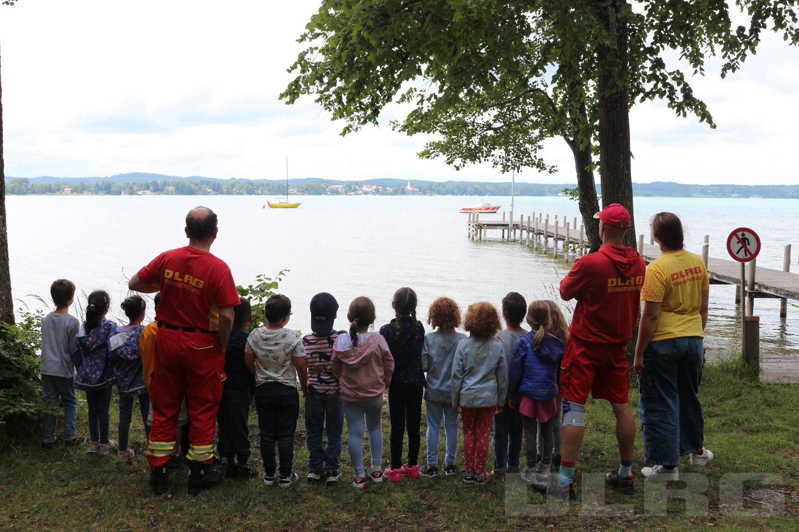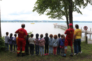 Auch in diesem Jahr hatten wir am letzten Tag vor den Sommerferien wieder den Kindergarten Weidach zu Gast an der Wasserrettungsstation. Inzwischen ist das schon fast eine kleine Tradition geworden: alle Kinder, die nach den Sommerferien in die Grundschule kommen, sind mit dabei. Es gibt mehrere Stationen, an denen die Baderegeln geübt werden, das Einsatzauto erkundet wird und eine Fahrt mit dem Rettungsboot gemacht wird.